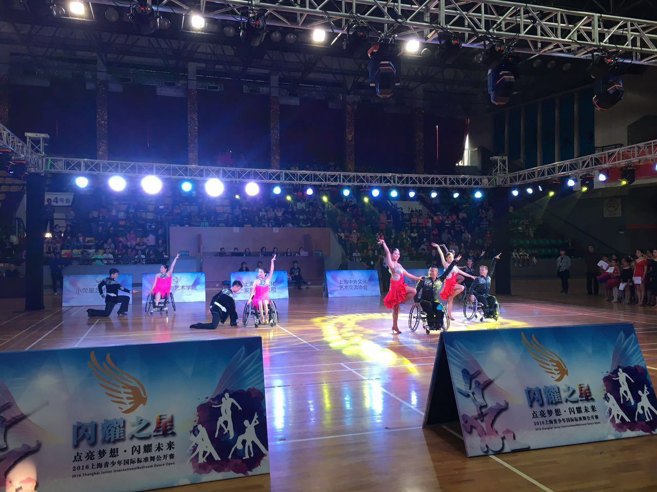 2016年11月5日周六下午13:30在上海市静安区全民健身中心举行了开赛暨“校园之星”两岸四地青少年艺术——展演上海地区专场比赛,“点亮梦想 闪耀未来”隆重活动。上海东方明珠残残疾人艺术团轮椅舞演员队被邀请参加表演,作为开场的表演节目《舞动轮椅》。